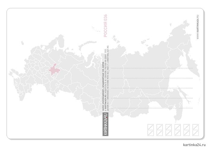 Почтовая открытка для международного посткроссинга. Город Киров. Качественная печать почтовой карточки на твердом картоне с фигурной обрезкой уголков. Размер почтовой открытки 14,8x9,8 см. Оригинальное оформление стороны почтовой карточки для написания сообщений. Россия, 2025.