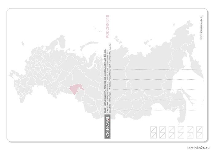 Почтовая открытка для международного посткроссинга. Город Тюмень. Качественная печать почтовой карточки на твердом картоне с фигурной обрезкой уголков. Размер почтовой открытки 14,8x9,8 см. Оригинальное оформление стороны почтовой карточки для написания сообщений. Россия, 2025.