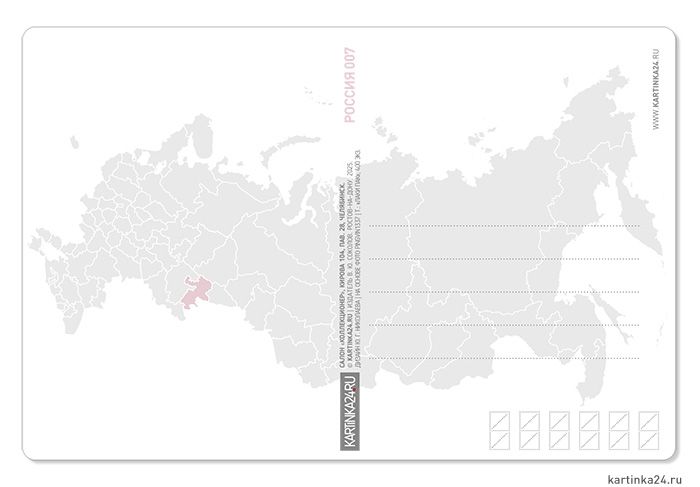 Почтовая открытка для международного посткроссинга. Город Челябинск. Качественная печать почтовой карточки на твердом картоне с фигурной обрезкой уголков. Размер почтовой открытки 14,8x9,8 см. Оригинальное оформление стороны почтовой карточки для написания сообщений. Россия, 2025.